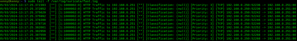 alert http $HOME_NET any -> 192.168.0.251 80 (msg:"HTTP Traffic to 192.168.0.251"; sid:1000002;)