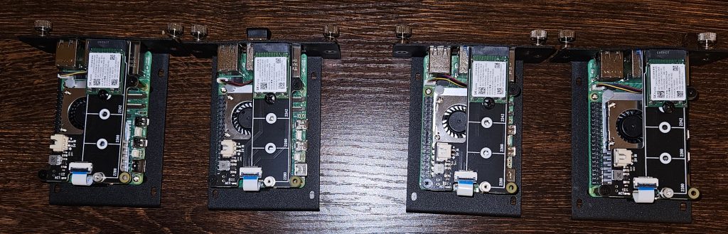 Here’s how we started out our journey, 4 raspberry pi 5’s, basic cases, 32 GB SD cards. As we are new to the world of these cool little devices, we noticed the attention around the on-board support for nvme and wanted to explore taking advantage of that.