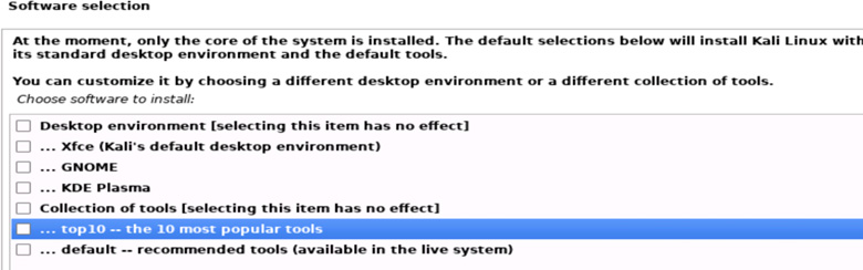 I’ll be starting off with a headless installation of Kali, meaning that I will install it without the graphical user interface (GUI). Upon arriving at the final installation screen from the Kali ISO file, I un-select all options for now (see image below), and will do a separate installation for Kali tool packages once done with everything. I will then showcase using different tools and configurations to customize my desktop environment and GUI to my references. Feel free to grab a copy of the script at our GitHub, if you wish to follow along the write-up.