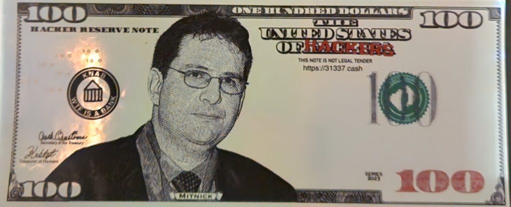 Years ago, as I began exploring for my place in cyber, I learned of Kevin Mitnick and his incredible stories.  As I continued my journey, I would hear more and more of others meeting Kevin at a book signing, or random run-ins at conferences, etc.  I was confident that one day I would be able to show my appreciation to Kevin in person.  Suddenly, on July 16th, 2023, Kevin Mitnick passed away due to pancreatic cancer.  In his honor, the following stickers were created and passed around at this year’s DEF CON.
