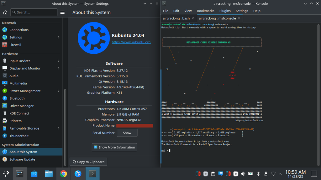 We were able to put together two PoCs: one using a C2 framework with GOAD (Game of Active Directory), and another getting Aircrack-ng working with the ALFA AWUS1900 card. Getting either of these to run was tougher than expected, especially since we had to compile from source for ARM64.